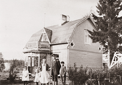 Espoon kaupunginmuseon kuvassa ovat Impi ja Emil lapsineen huvilansa edessä Rajatie 34:ssä, johon muutettiin 1917.