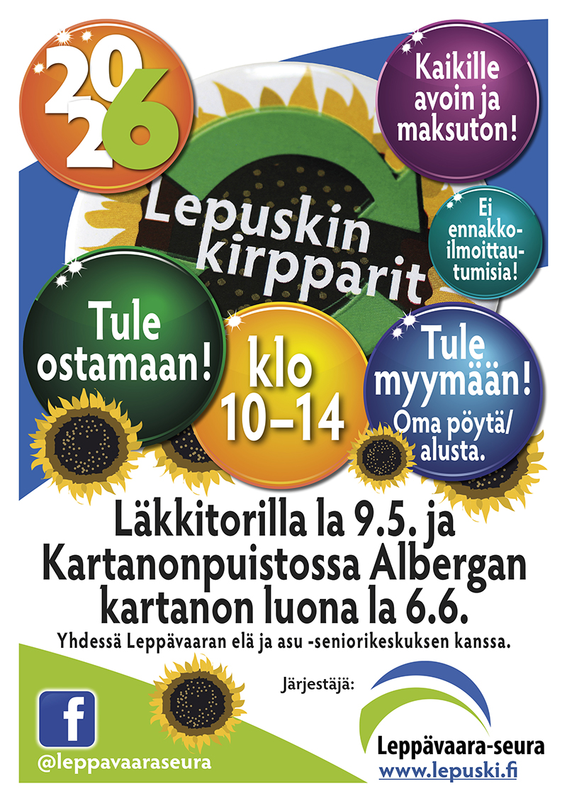 Tervetuloa ostamaan ja myymään ja nauttimaan Lepuskin kirppareiden mukavasta tunnelmasta!