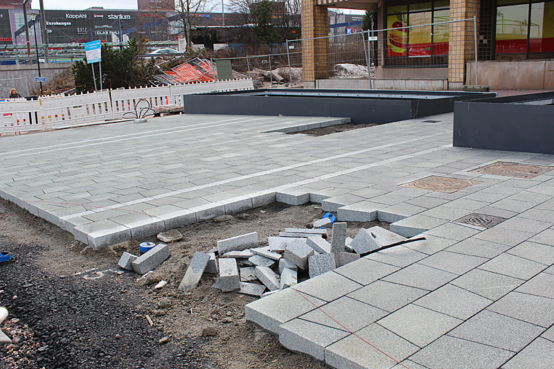 Läkkitorin remontissa tahti kiihtyy ja liikenteen suunta on kääntynyt: Ennen kuorma-autot ajoivat pois torilta kaivettua maata, nyt sinne tuodaan soraa ja hiekkaa pinnoitteiden alle. Ennen kaivinkoneet kaivoivat monttuja, nyt ne täyttävät ja tasoittavat pohjia laatoitukselle. Lämmitettävän sääsuojan alla syntyy nopeammin uutta pintaa ja säistä riippumatta.