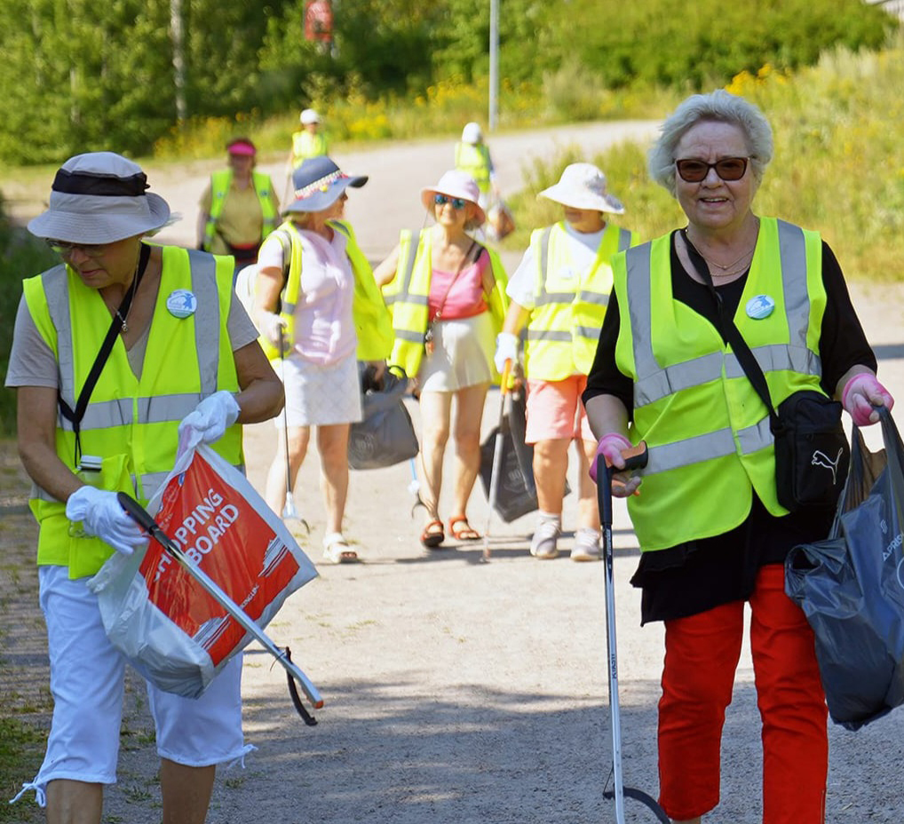 Roskat harmittavat, mutta yhdessä tekemisestä Roskarouvat saavat iloa ja voimaa Siistin Lepuskin puolesta toimimisessa. Kuvassa Roskarouvat olivat mukana elokuussa 2025 Leppävaaran Urheilupuistossa, jossa kuvattiin kaupungin mainosvideota.