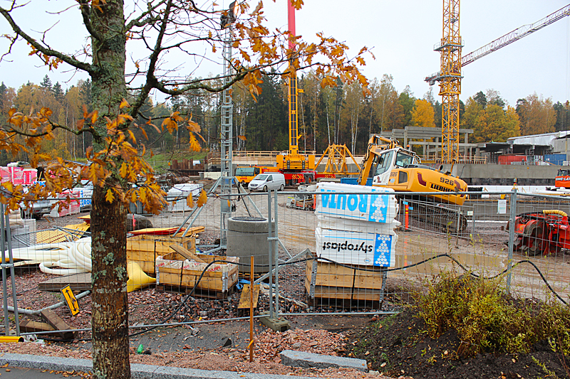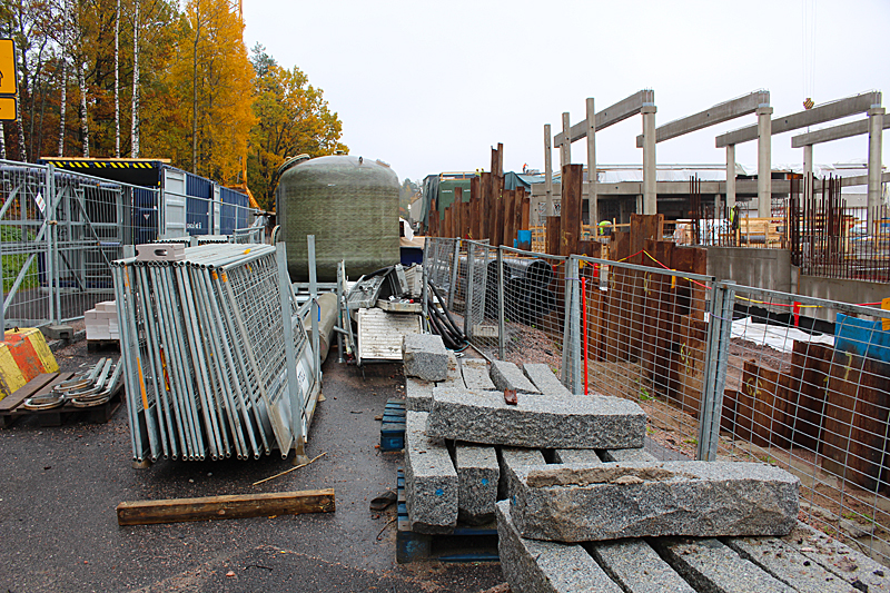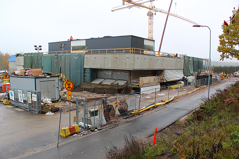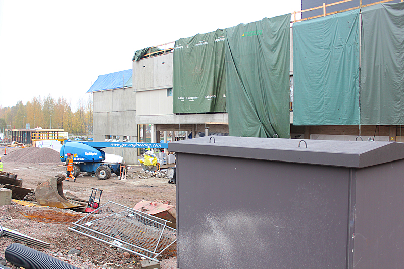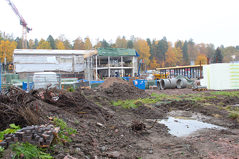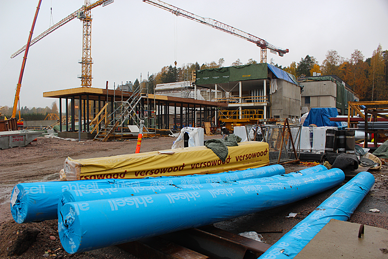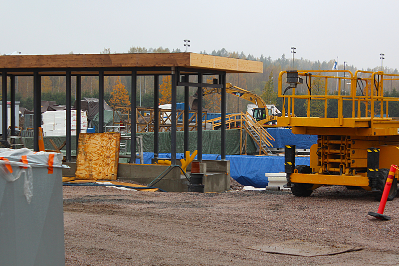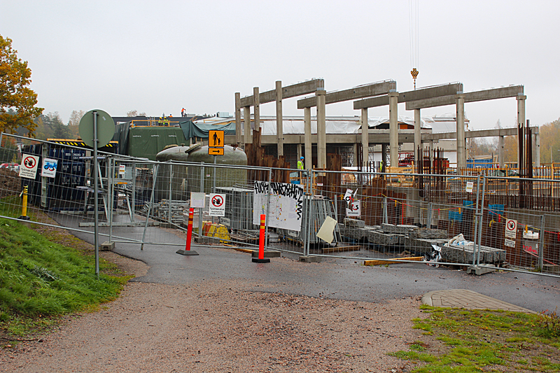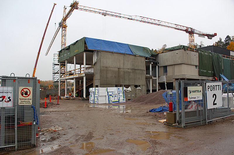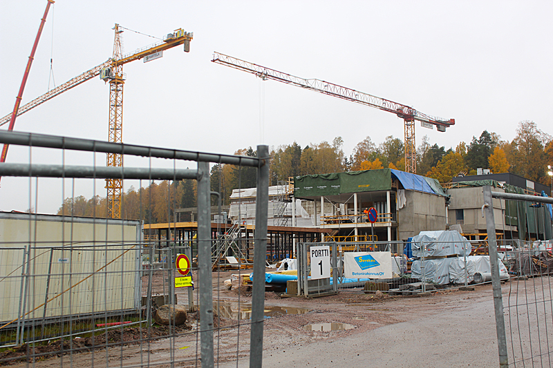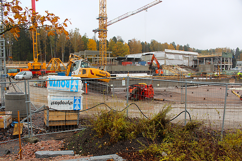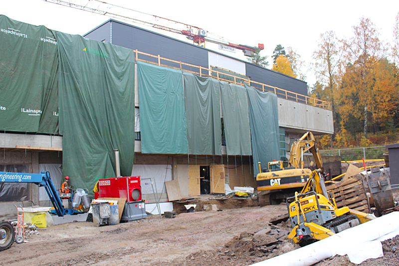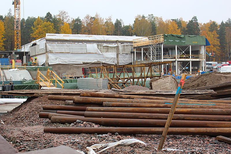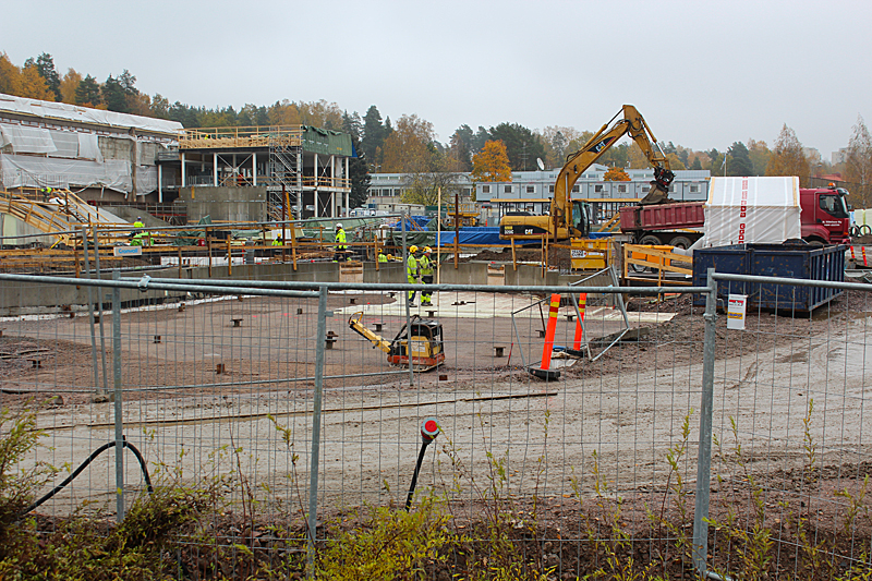 Syksyn harmaassa säässä uimahallin rakennustyöt etenevät kovaa vauhtia. Ulkoaltaalla on paikkansa ja uimahallin laajennusosat hyppyaltaineen kasvavat paikalleen.