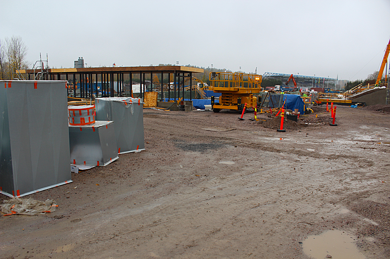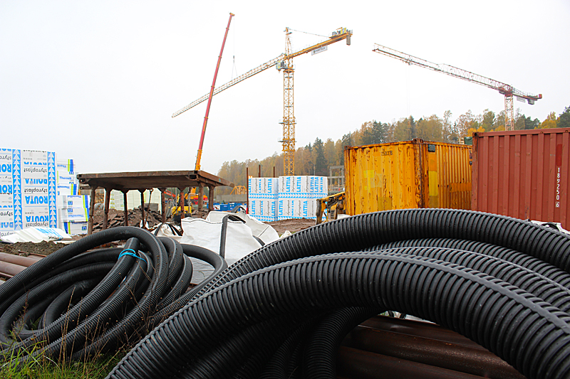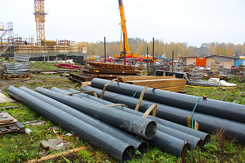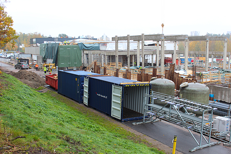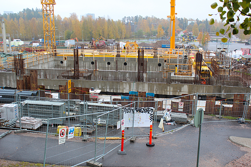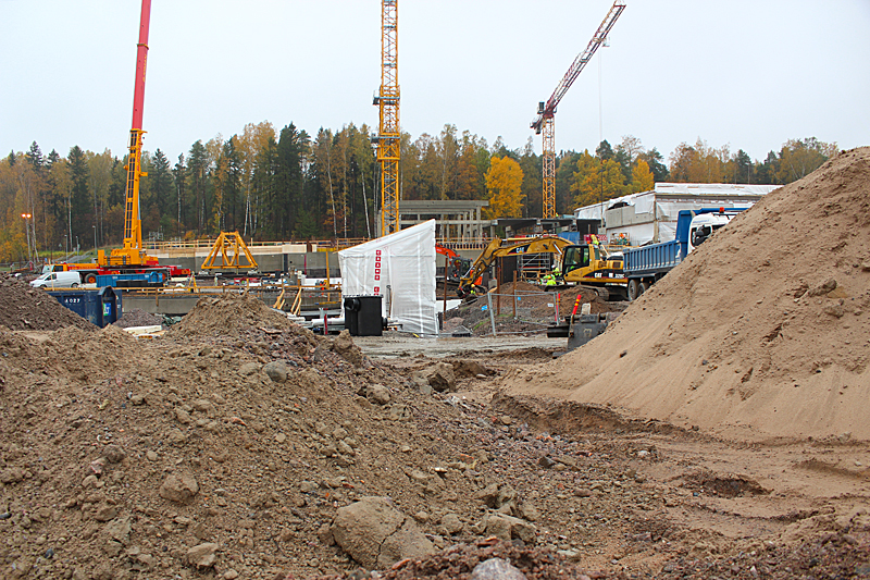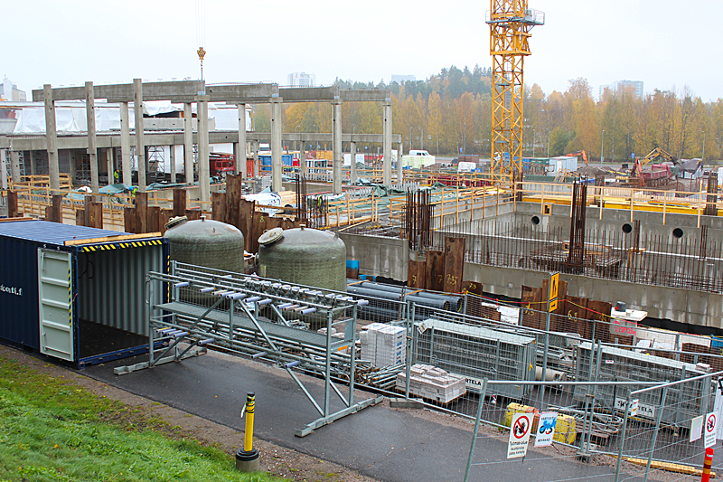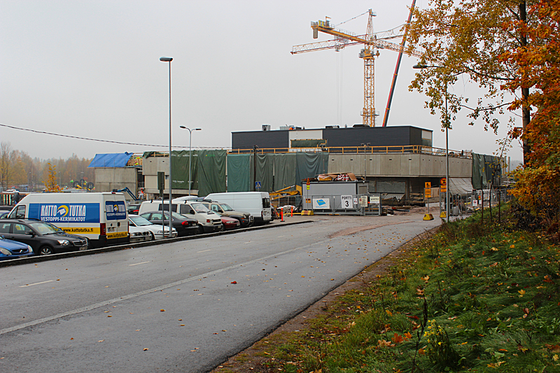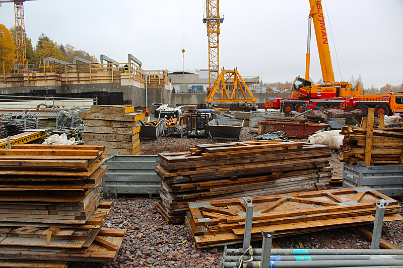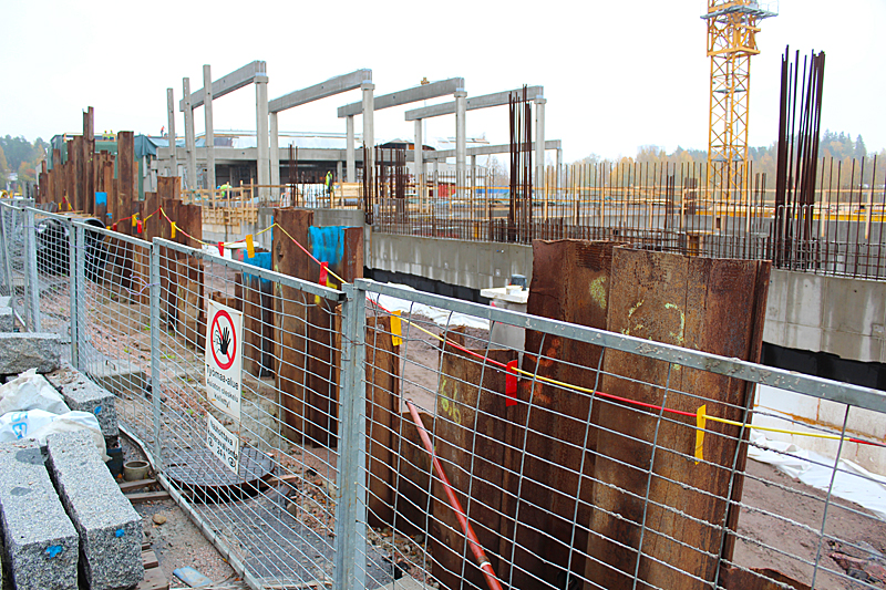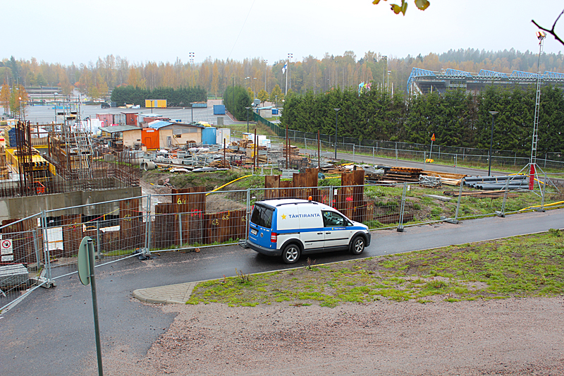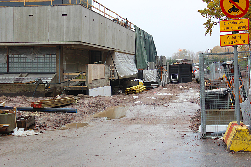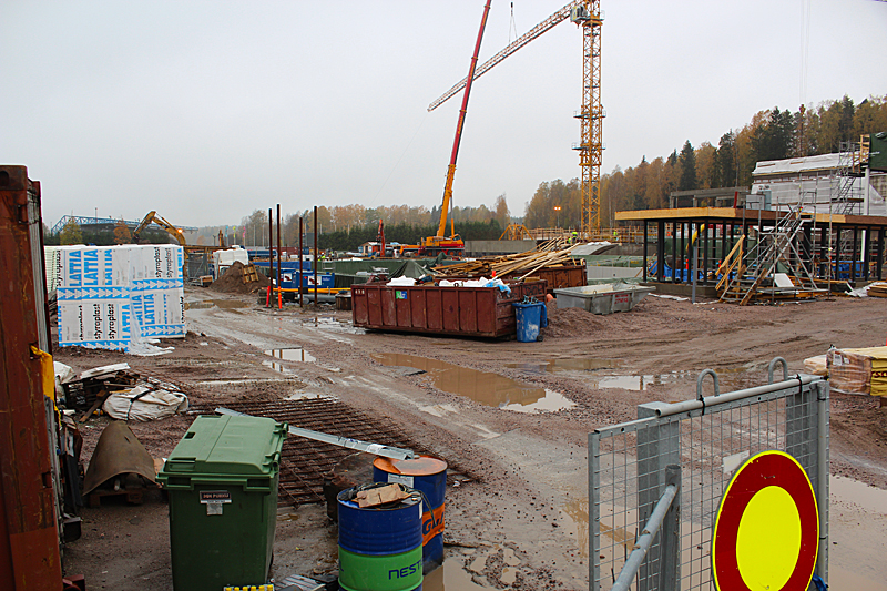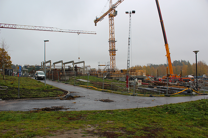 Syksyn harmaassa säässä uimahallin rakennustyöt etenevät kovaa vauhtia. Ulkoaltaalla on paikkansa ja uimahallin laajennusosat hyppyaltaineen kasvavat paikalleen.