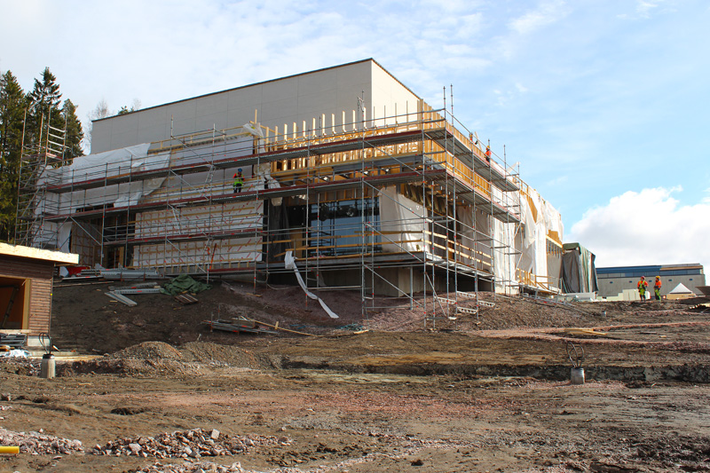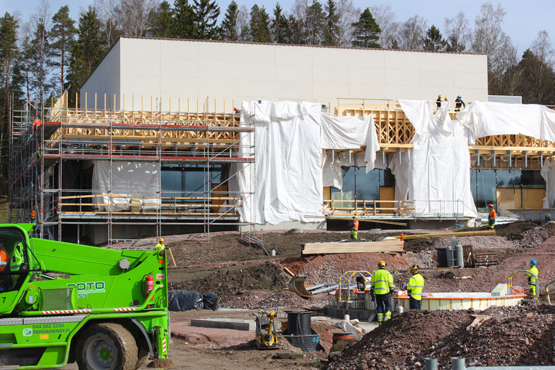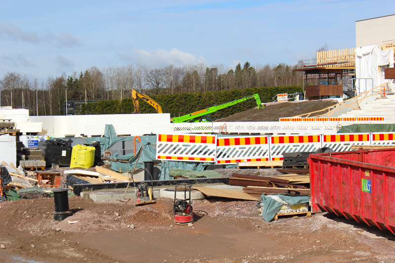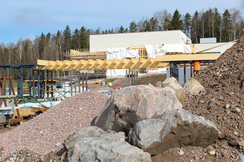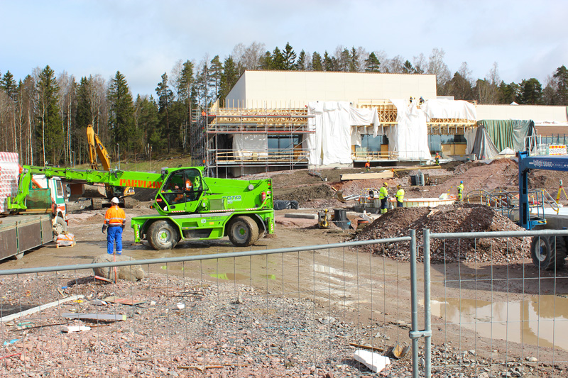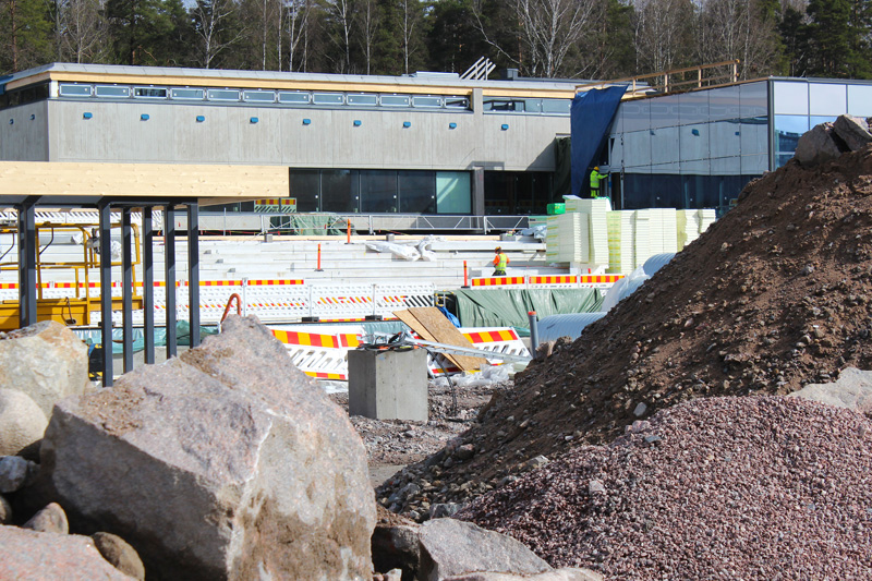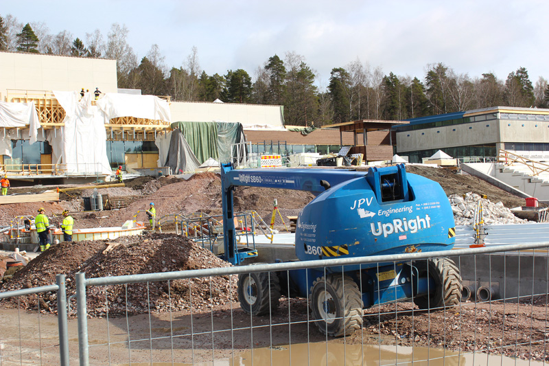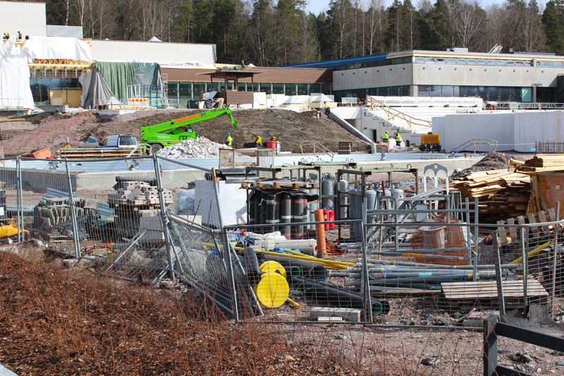 Aurinko hellii uimakeskuksen työmaata. Rakennukset alkavat julkisivultaan saada näkyvän muotonsa ja työt siirtyvät sisätiloihin. Samaan aikaan ulkoalueiden ja -altaiden rakentaminen edistyy ja myös ne alkavat hahmottua maisemassa ja hyvältä näyttää: Tulossa on Lepuskin oma biitsi kaikkine herkkuineen.